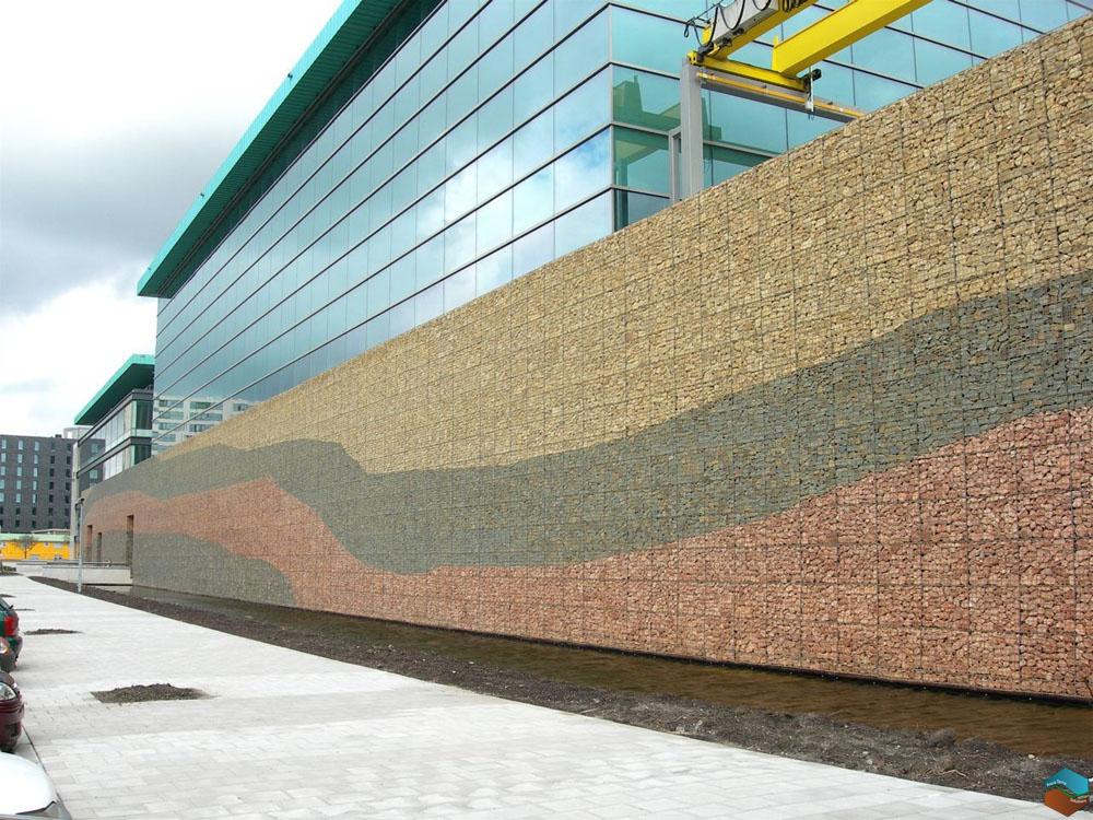 Les façades en gabions électrosoudés offrent une très large palette de teintes (pierres et panneaux), d’effets plastiques (transparence, formes de pierres, densité et contrastes), de reliefs (creux et bosses) qui confère aux espaces une valeur identitaire forte.